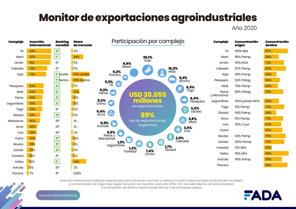 El “Monitor de Exportaciones Agroindustriales” se presenta como una herramienta que nos permite visualizar de manera rápida el gran potencial exportador de nuestra Argentina: qué producimos, para quiénes, cuánto nos compran, en qué nos beneficia producir para nosotros y para el mundo. Hay múltiples mitos en torno a los beneficios o perjuicios de las exportaciones y el estudio de FADA aporta a echar luz con datos y análisis.