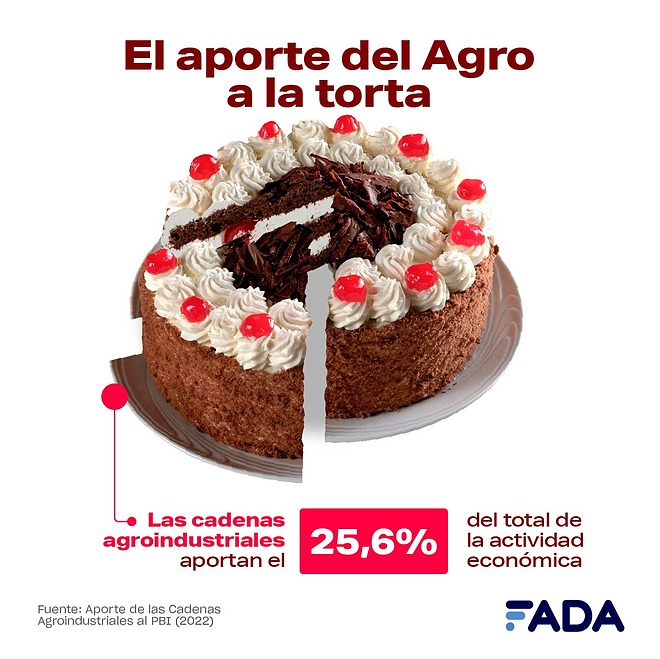El aporte de las cadenas agro al PBI nacional creció de 24,1% a un 25,6% en un año, comparando 2021 con el 2020. El dato deriva de un informe anual de FADA (Fundación Agropecuaria para el Desarrollo de Argentina) sobre el aporte de las cadenas agroindustriales al PBI, “a nuestra torta nacional”.
