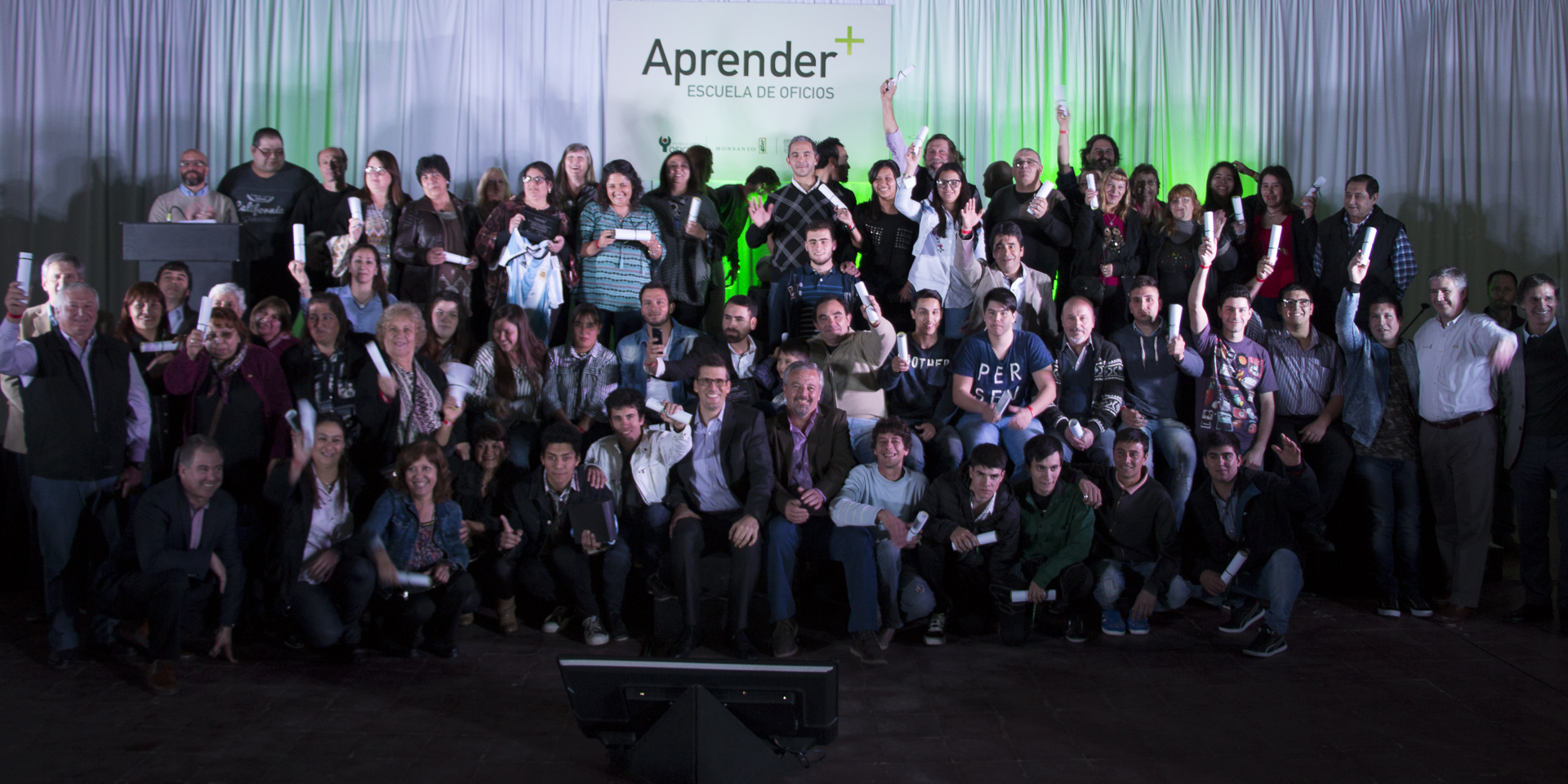 Ésta semana se realizó en la localidad de Rojas la entrega de certificados a los primeros 65 alumnos del Programa Aprender+, una iniciativa que busca promover la capacitación e inserción laboral de la comunidad; especialmente diseñada en función de las necesidades de los habitantes de la localidad. Con una inversión de más de 3 millones de pesos por parte de Monsanto, resultado del trabajo articulado entre el sector público (Municipalidad de Rojas), el privado (Monsanto) y las Organizaciones de la Sociedad Civil (Fundación Oficios).