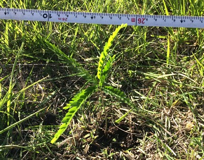 “Queríamos investigar qué efecto tenía la ganadería en las primeras etapas del ciclo de vida de la Acacia negra en la Región Pampeana. Por eso realizamos un experimento a campo en parcelas pastoreadas y no pastoreadas por vacunos. En cada una colocamos 20 plantas de G. triacanthos de 7 cm de altura —plantas chicas— y 20 de 13 cm de altura —plantas grandes—, e hicimos que las vacas pastorearan dos veces las parcelas correspondientes, con un mes de descanso en el medio para que el pastizal se pudiera recuperar”, dijo a Sobre La Tierra Melina Aranda, docente de la cátedra de Ecología de la FAUBA.