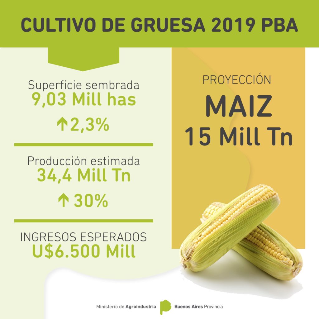El Ministerio de Agroindustria bonaerense, a través de su Observatorio de Datos de Bioeconomía, informa que la campaña de gruesa del 2019 en la Provincia de Buenos Aires alcanza las 9,03 millones de hectáreas sembradas, lo que representa un crecimiento del 2,3% en relación a la campaña anterior.
